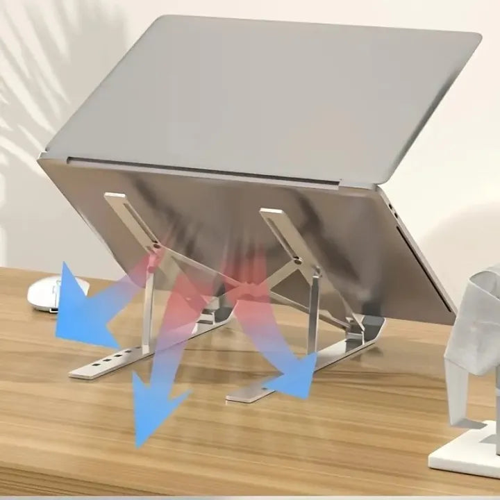 Upgrade your workspace with this premium aluminium laptop stand, designed for comfort, stability, and cooling efficiency. Perfect for laptops of all sizes, this stand combines style, functionality, and portability.